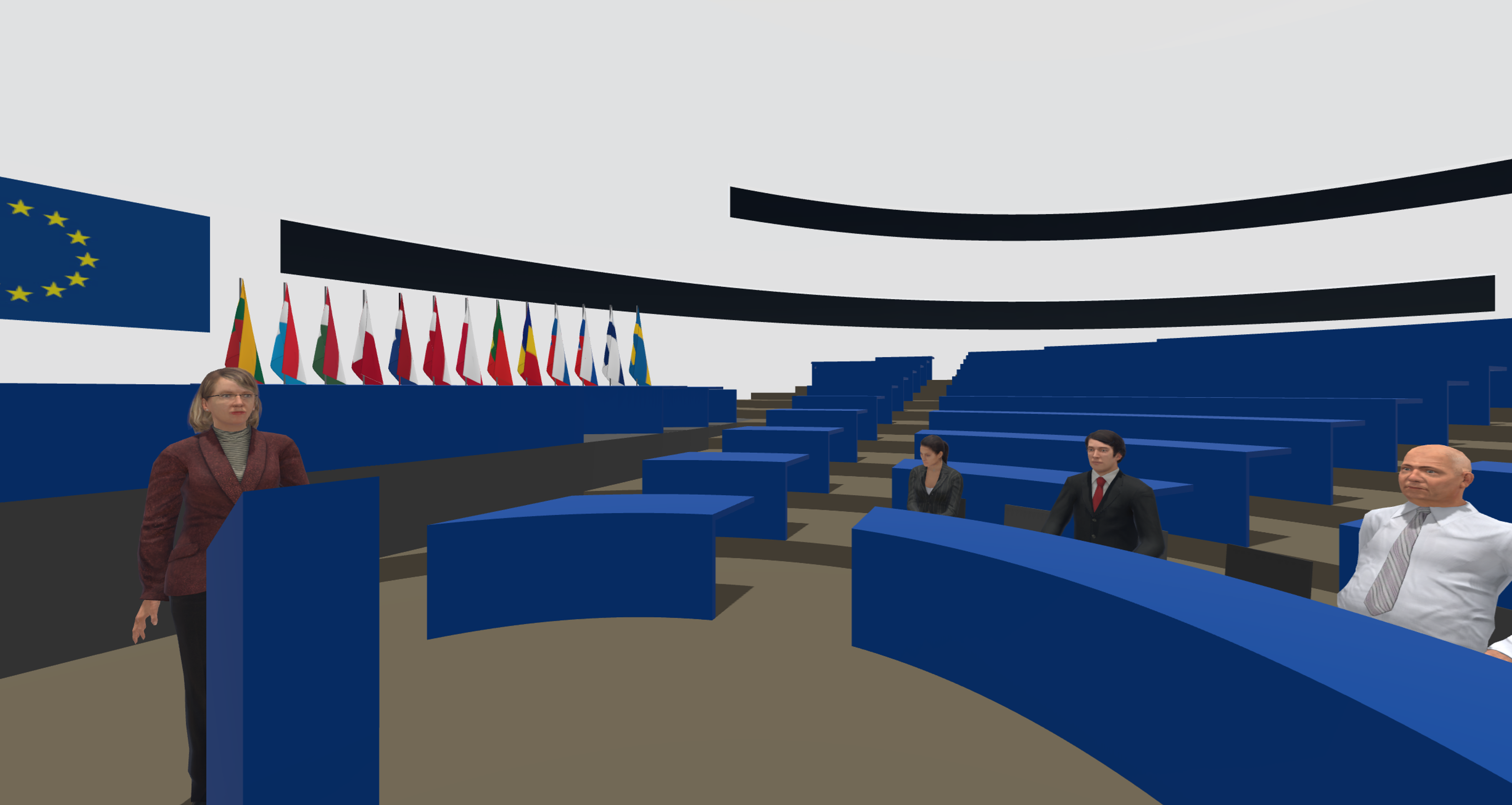 Im Rahmen des Planspielseminars „Politische Ökonomie der europäischen Integration“ tauchen die Lernenden ein in ein immersives Lernszenario: Mit Hilfe der Multi User-Anwendung VRsim_EU diskutieren sie im virtuellen Plenarsaal des Europäischen Parlaments. Dabei schlüpfen sie mittels Avataren in die Rolle von EU-Abgeordneten, was die Perspektiv- bzw. Rollenübernahme begünstigt. Im ersten Teil des Seminars werden politökonomische Theorien der europäischen Integration und die Geschichte der Europäischen Wirtschafts- und Währungsunion behandelt. Der zweite Teil beschäftigt sich mit aktuellen Themen der Wirtschafts- und Währungspolitik der Europäischen Union. Darauf aufbauend erarbeiten die Studierenden eigene Rollenkarten mit Meinungen und Argumenten von Abgeordneten des Europäischen Parlaments, um gemeinsam neue Regeln für die Zukunft der Wirtschafts- und Währungsunion zu formulieren.